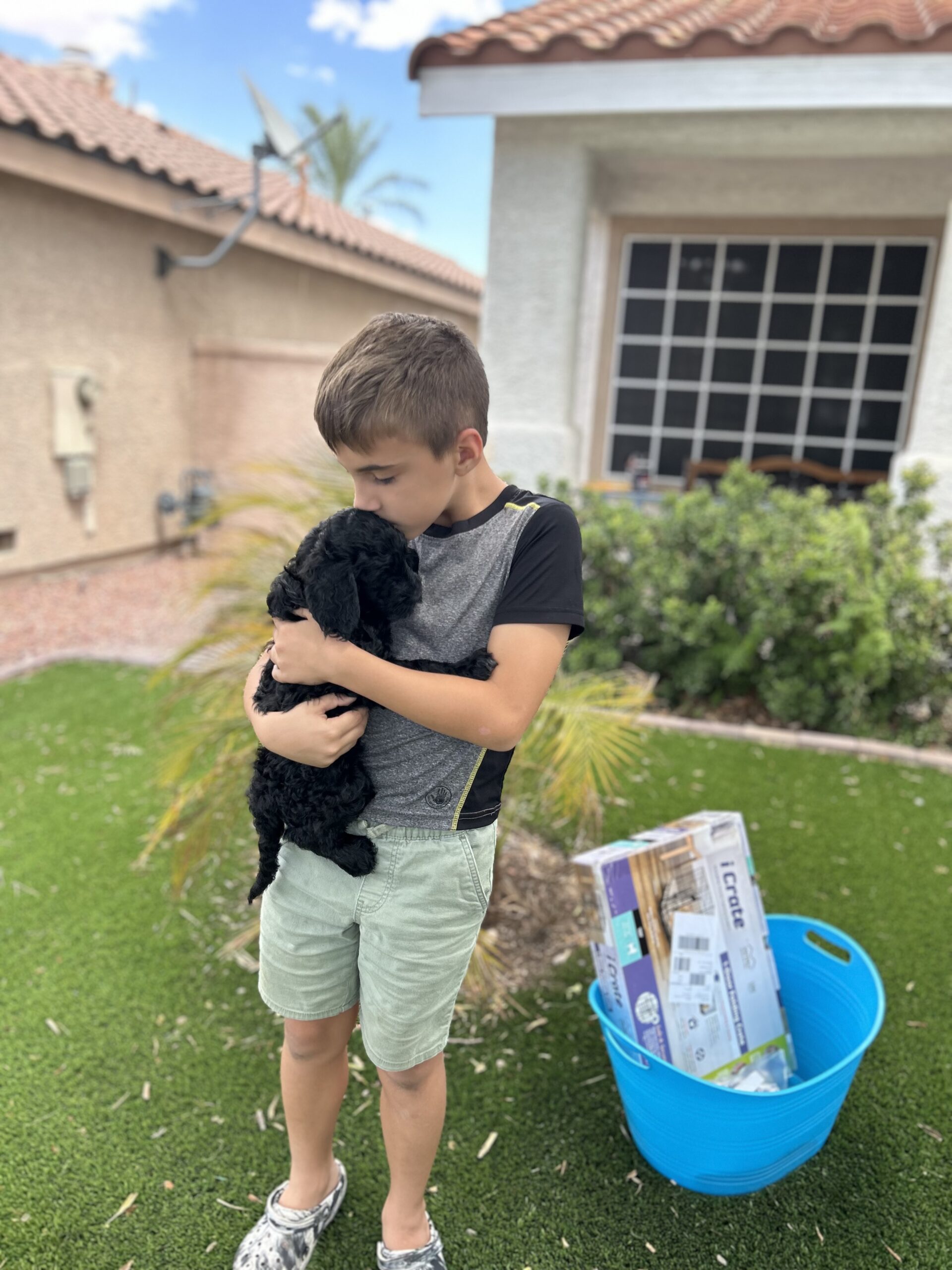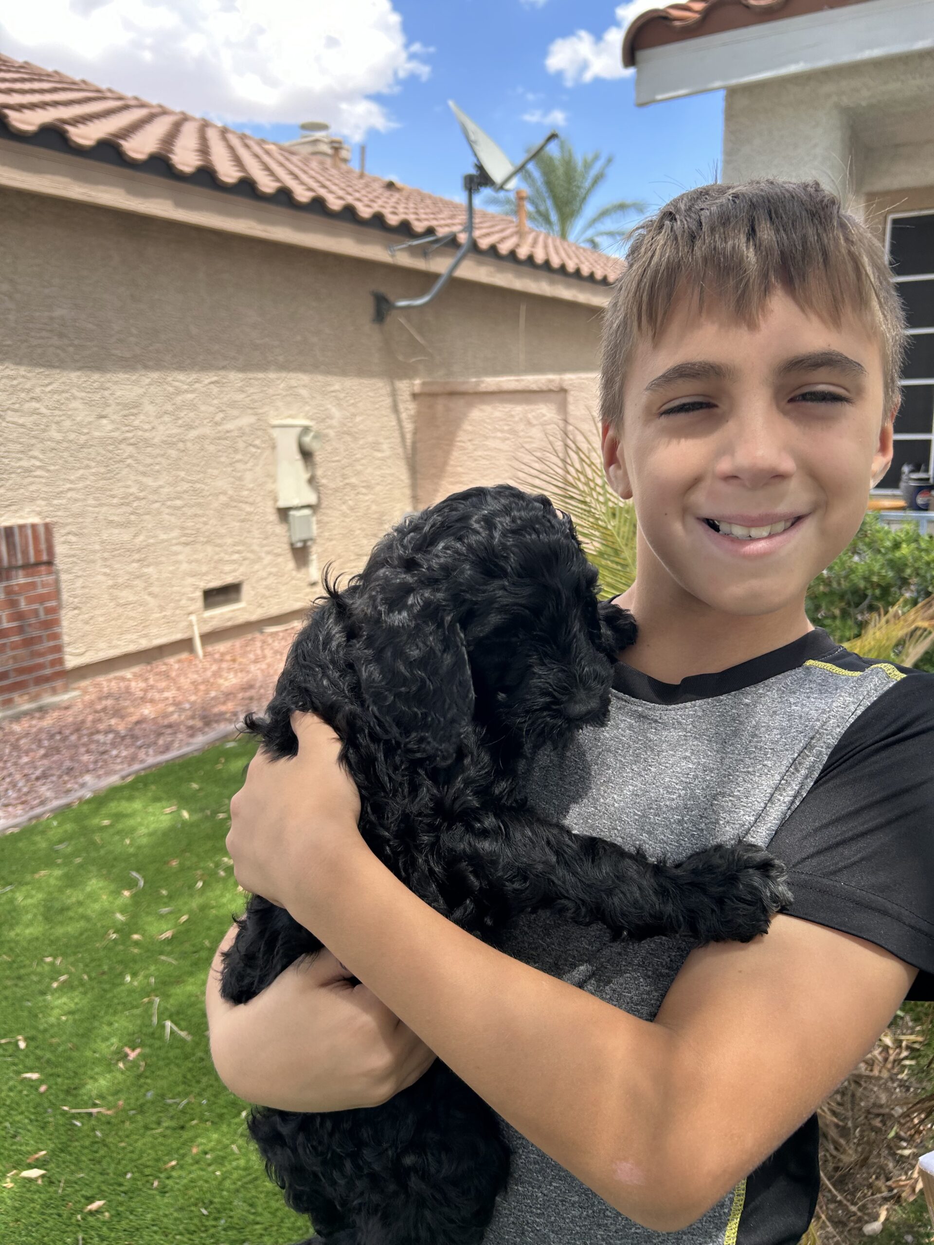 We are a small, home-based breeder in the heart of Las Vegas Nevada, specializing in the rare and stunning multigenerational black Goldendoodle—cherished for their intelligence, calm temperament, and beautifully allergy-friendly coats.
